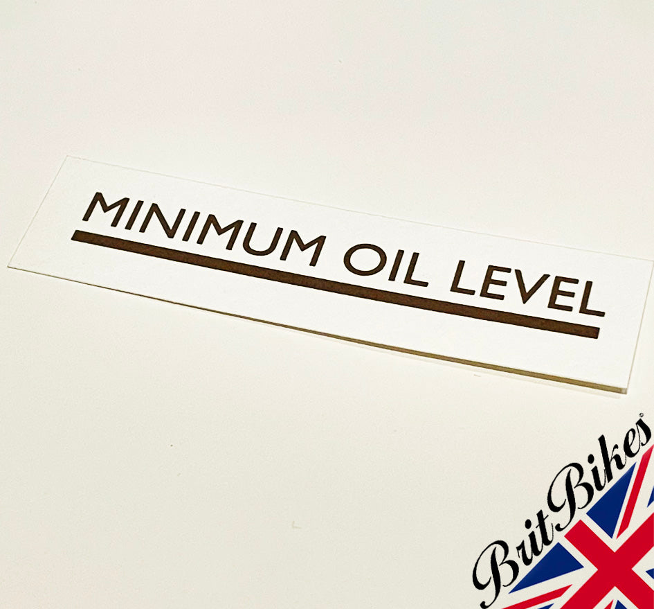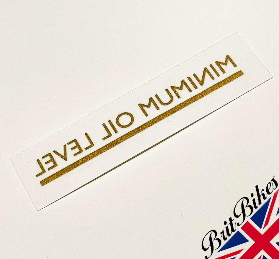 TRIUMPH GOLD MINIMUM OIL LEVEL OIL TANK VINYL DECAL - MADE IN ENGLAND 60-0003